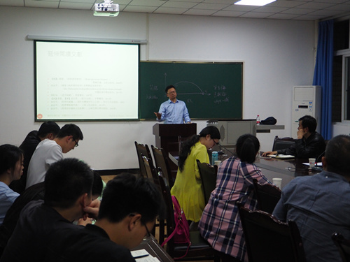 讲座伊始,余教授从概念谈起,介绍了古代中西方对于“大山”和“天”的不同理解,分析了本体与本心、真如与佛性、七真如、是、道等理念,这一解说使在座的师生对于本次讲座内容有了初步的了解,为此次学术报告更加深入的推进做了重要铺垫。随后余教授切入正题,谈到了五个命题,第一个命题为“万物皆备于我”,余教授从孟子谈起,讲到人性四说,孟子的性善论对后世影响最大,并详细介绍了这一观点,总结为我的世界存在于我的看里,存在于我的感觉里。第二个命题为“吾心即宇宙”,余教授从陆九渊谈起,讲到宋明理学中,心与理的关系是最基本的哲学问题之一,并以此展开论述,详细介绍了陆九渊的心学观点。第三个命题为“心无外物”,余教授介绍了心学的巅峰——阳明心学,心无外物是王阳明哲学的第一命题,余教授介绍到:有意即是有物,意是现象世界的发现者和创立者,并介绍了著名的山花之喻。第四个命题为“物方生方死”,余教授在此谈到了辩证法的实质,介绍了哲学家惠施,阐述了相对论不是辩证法、物没有时空、1/26秒、没有当下、出生入死等观点。第五个命题为“物不迁论”,余教授介绍了佛教哲学的创始人僧肇,详细阐述了僧肇的观点。随后,余教授与在座师生进行了气氛活跃、思想深入的互动交流。