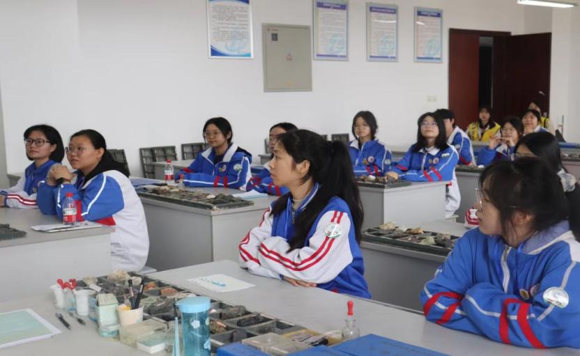 研学之旅第三站:西南石油大学地球与科学技术学院。“地球历史的见证者-化石”体验项目中,基地老师采用集中讲述、分组实训的方式,为学生讲解化石的形状、结构、纹饰和有机化学组分,并用显微镜带领同学们跨越时空,注解神秘的史前世界。“石头家族的那些事”体验项目中,基地老师通过多种岩石标本的展示,为同学们讲述自然界中岩石的构成要素及形成发展过程,让学生们感受大自然的魅力。