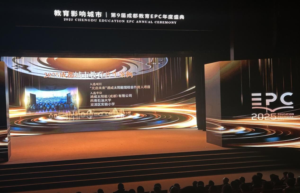 2026年1月15日,成都市教育局成都传媒集团指导,成都商报红星新闻红星教育传媒主办的“教育影响城市”第九届成都教育EPC年度盛典在四川省文化艺术中心举行。我校四川省能源文化研学旅行实践基地与通威太阳能有限公司、双流区实验小学联合申报的“通威太阳能馆校合作育人项目”获评“成都城市教育共生案例”,成为本年度发布的代表性案例之一。马克思主义学院思政实践研究中心主任黄笛受邀参加此次盛典,并与项目团队共同领取奖杯。