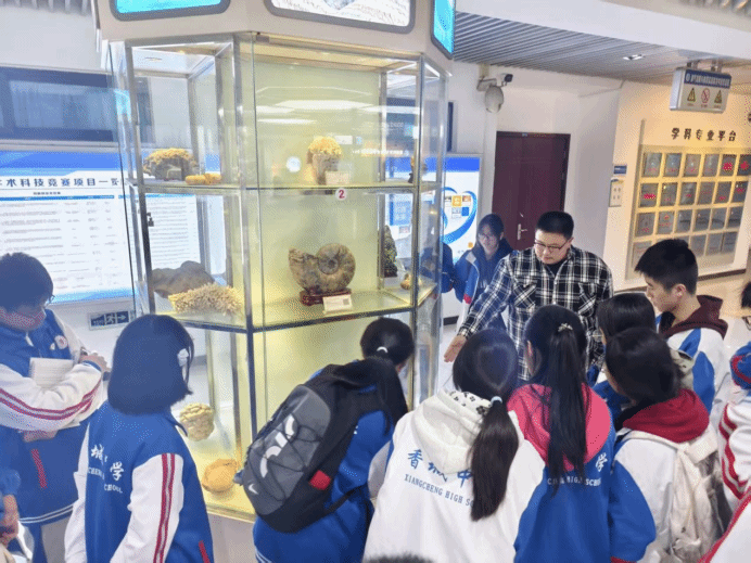 随后师生步入地球科学与技术学院岩石矿物展厅,丰富的矿物标本系统展示地球演化历程。在生动讲解中,同学们增强了对自然资源的科学认知,提升了珍惜资源、探索未知的责任意识,进一步坚定了投身资源强国建设的决心。