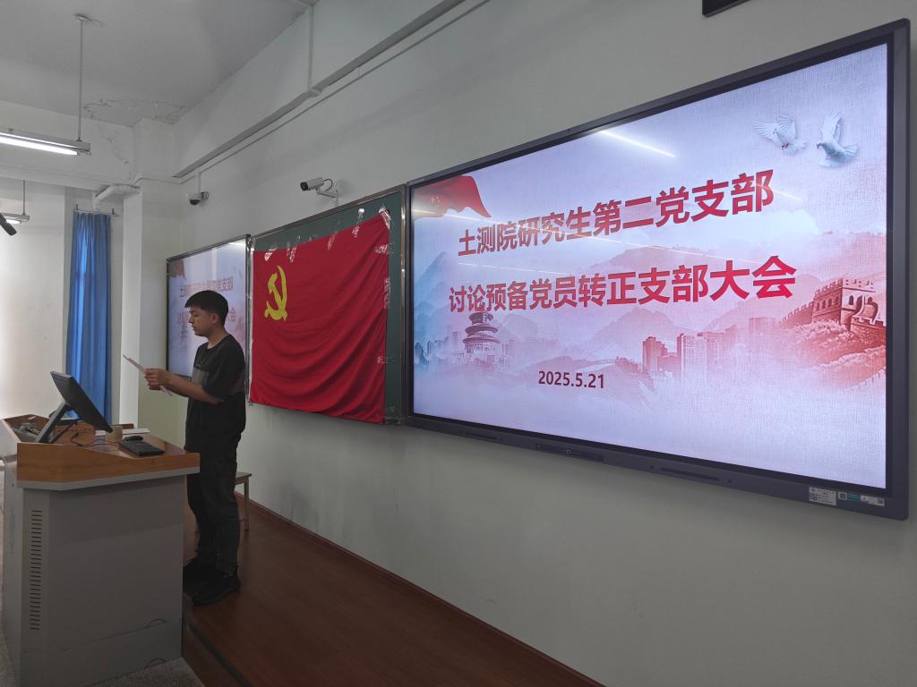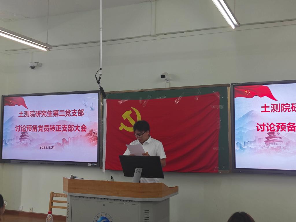 2025年5月21日,研究生第二党支部于明志楼A308召开预备党员转正支部大会,对黎之戊、张浩然、郑文豪、周莹、杨雅婷5位同志的转正问题进行讨论与表决。
