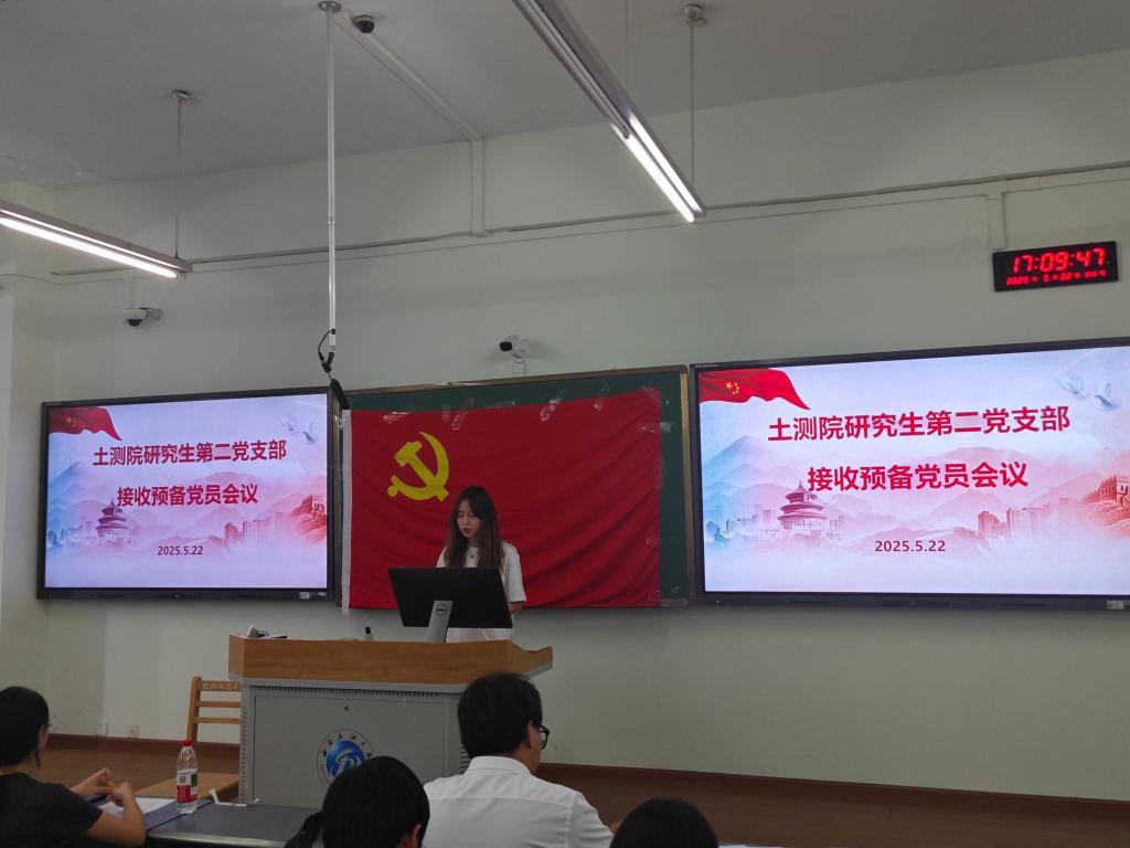 2025年5月22日17时,研究生第二党支部在明志楼召开支部大会,对冯江、吴佳敏、伍思怡、李瑀迪四位发展对象的入党问题进行讨论与审议。
