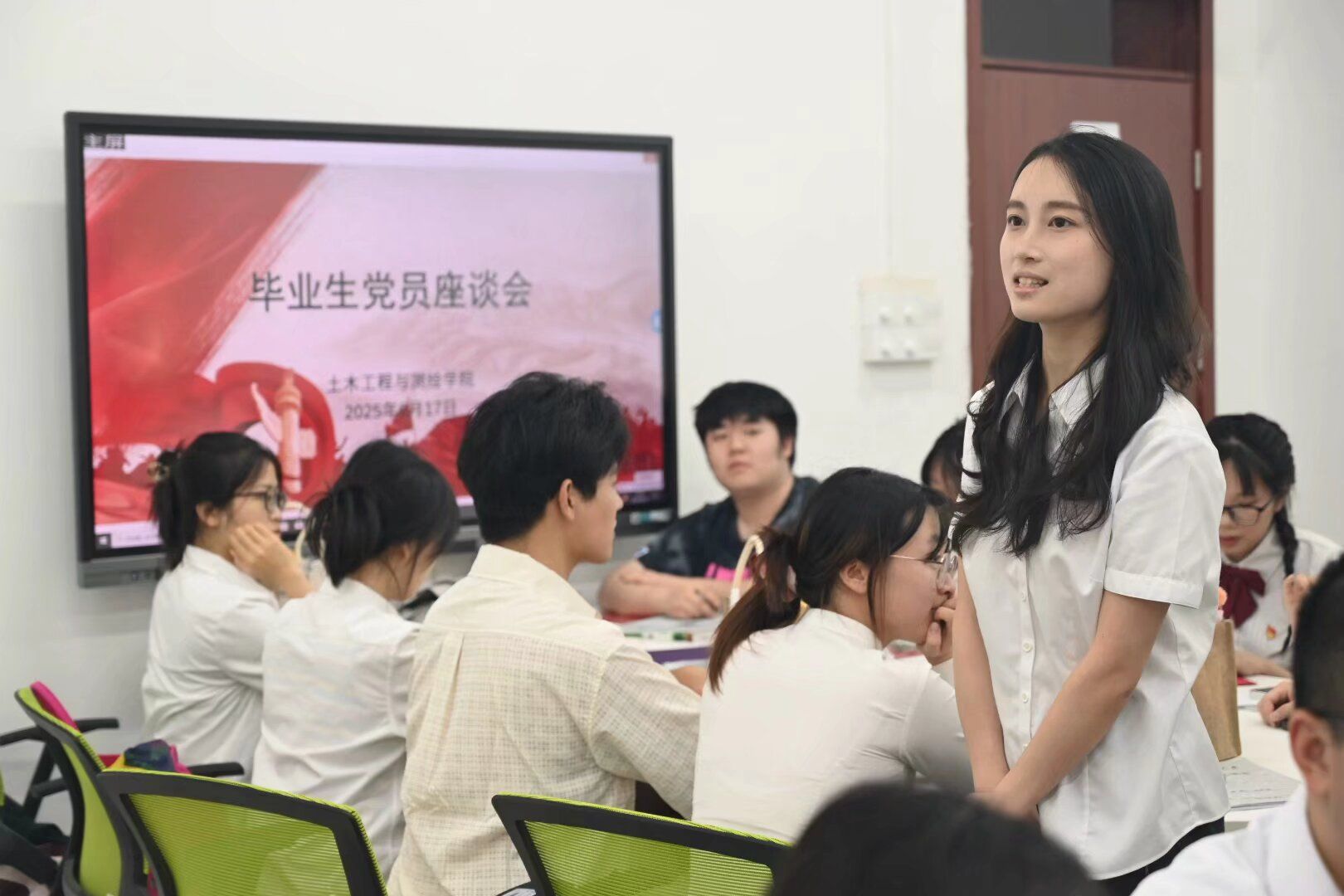 为推进党建与人才培养深度融合,进一步强化党建对毕业生党员发展的引领作用。6月17日,土木工程与测绘学院(南充)于第三教学楼3111教室组织召开2025届毕业生党员座谈会。学院副院长潘海泽及三位学生党支部书记参与。