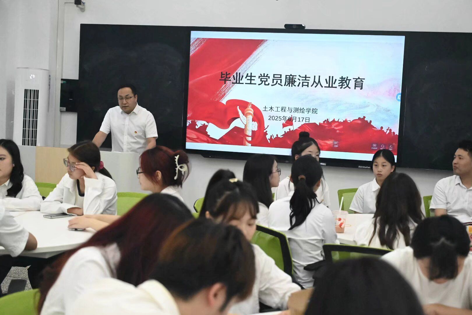 为筑牢毕业生党员廉洁从业思想根基,强化使命担当意识。6月17日,土木工程与测绘学院(南充)于第三教学楼3111教室,面向2025届毕业生党员开展了一场意义深远的党课活动。