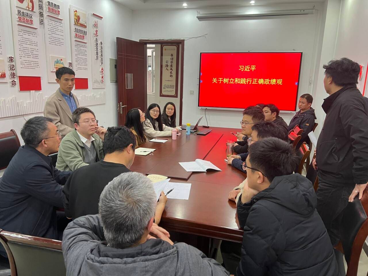3月12日下午四点,在明志楼A407办公室,测绘工程教研室党支部召开专题学习动员会,全体党员深入学习《习近平关于树立和践行正确政绩观论述摘编》,支部全体党员教师参加学习,学院党委书记熊俊楠出席并作指导讲话。