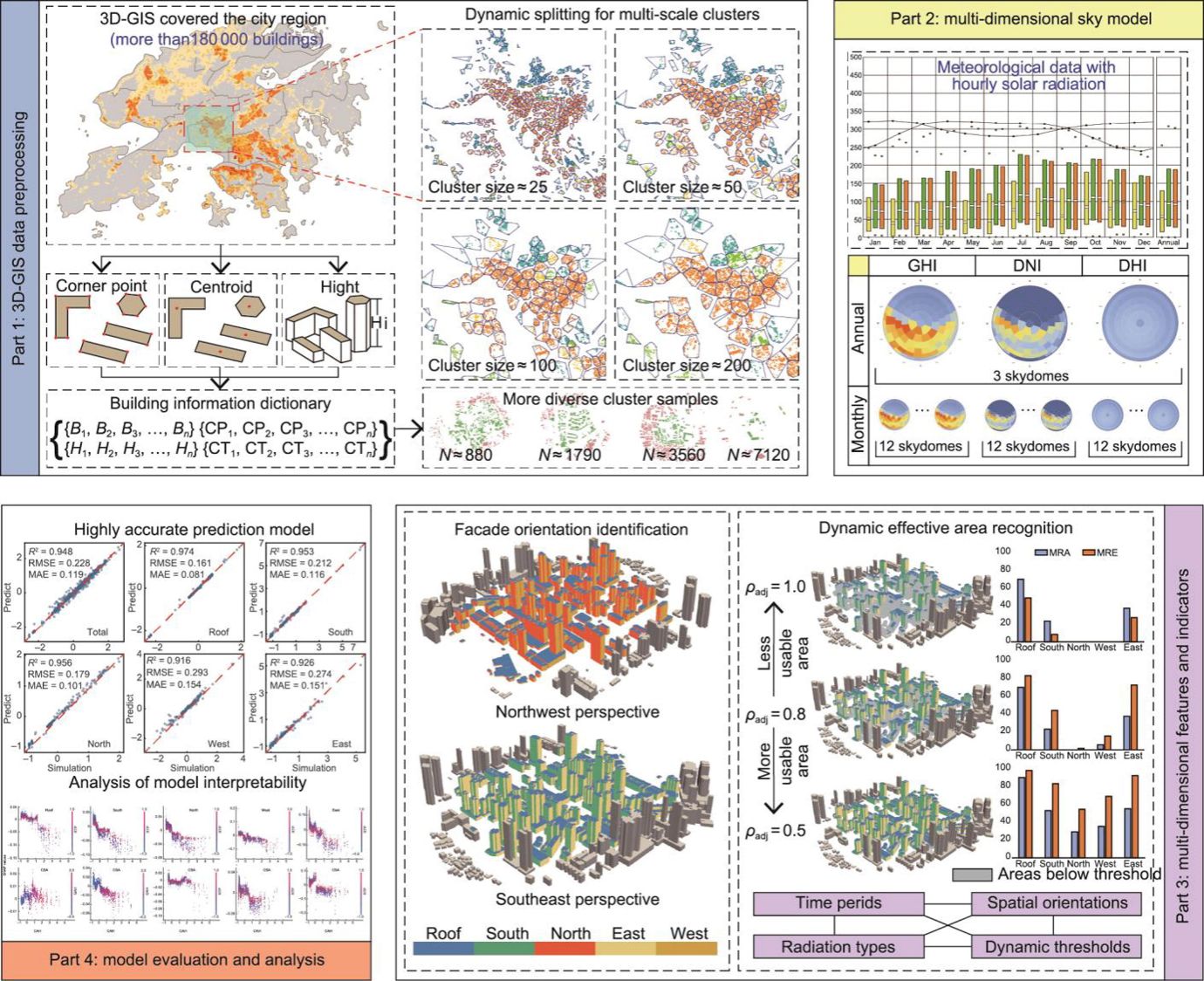 该研究采用多源异构数据融合方法,首次探明了高密度城市建筑表面在复杂遮挡条件下的有效利用潜力时空耦合变化规律,为推进城市建筑光伏一体化(BIPV)建设提供了新的见解。