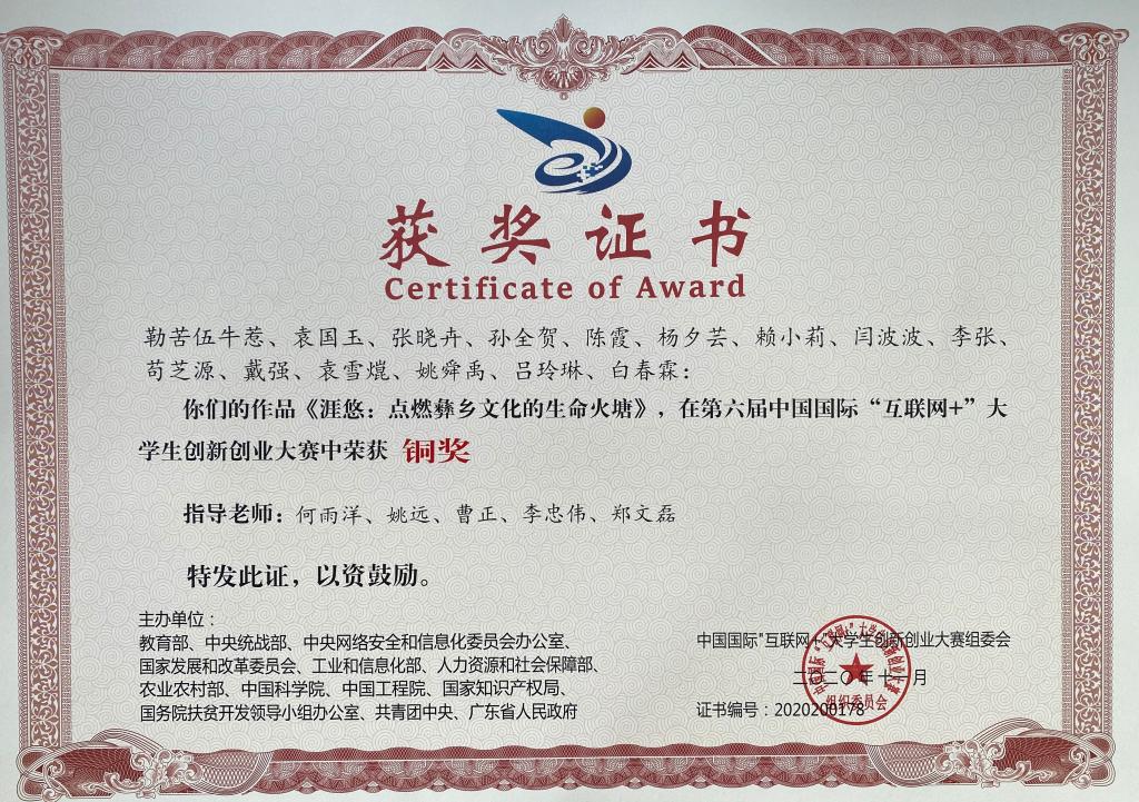 奖项名称:第四届中国“互联网+”大学生创新创业大赛铜奖
