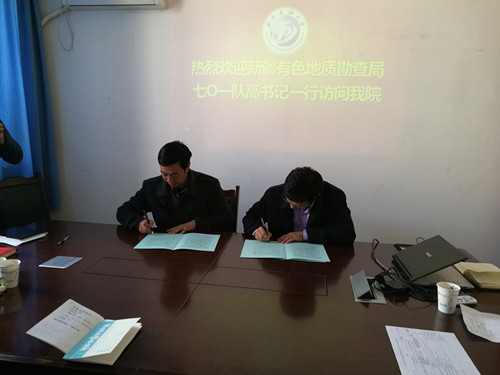 土建院党委书记曾明友、701队党委书记高荣新在战略合作协议书上签字