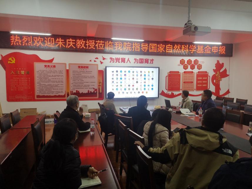 朱庆教授结合自身申报国家自然基金项目的经历结合近年来参与国家自然基金评审经验,指出选题要有特色或新意,需求一定要明确,问题一定要到位,研究边界与思路一定要清楚,生动形象介绍了基金选题分类的科学属性选择等关于国家自然基金项目申请及实施相关问题。朱教授报告结束后,针对部分教师的基金申报书拟定题目及摘要内容撰写进行专项点评。