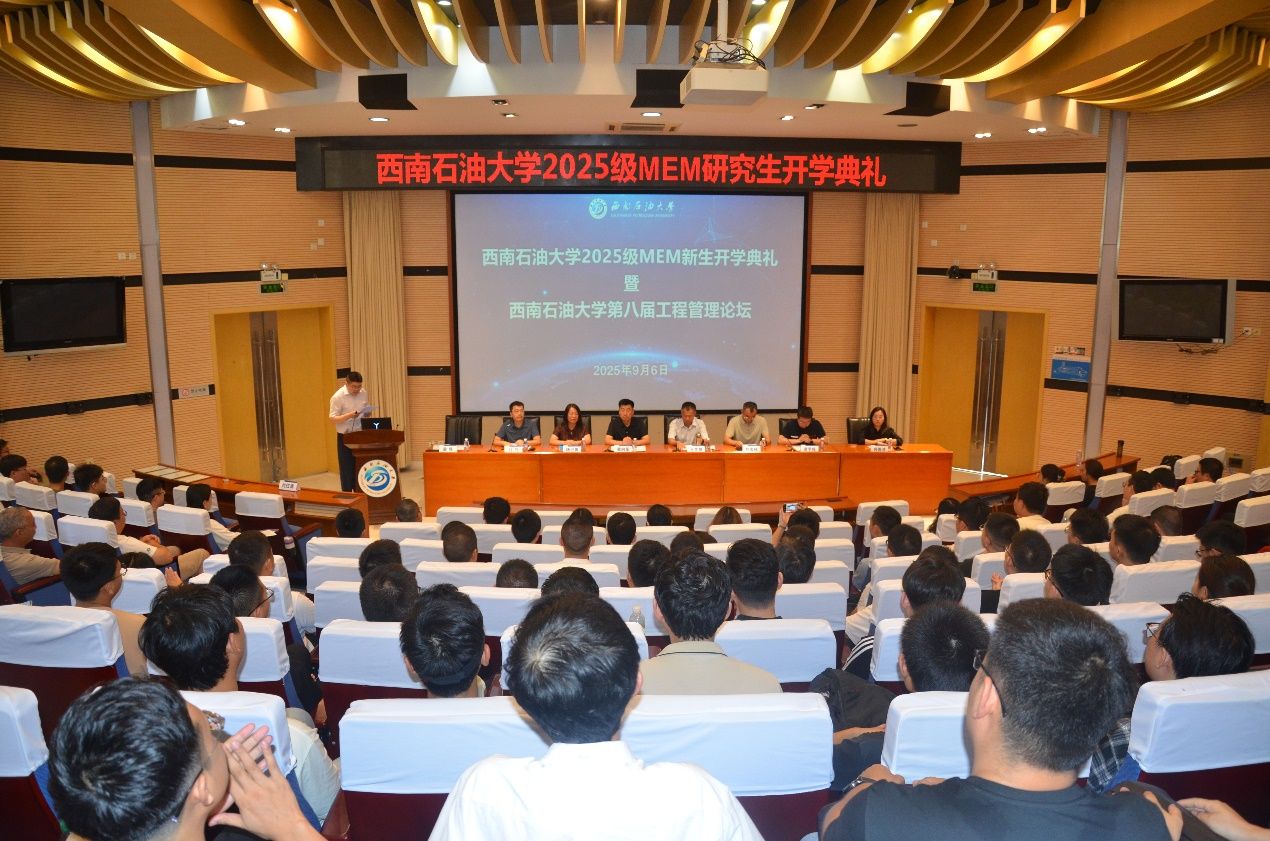 9月6日上午,西南石油大学MEM2025级新生开学典礼暨西南石油大学第八届工程管理论坛在思学楼A114报告厅隆重举行。全国MEM教指委委员、中国矿大工程管理专业建设负责人王文顺教授,国家危废处置工程中心副主任、四川省物流类专业教指委副主任梁学栋教授,西南石油大学副校长裴向军,研究生院副院长杨世箐出席典礼,土测院甘院长、副书记何雨洋、副院长潘海泽、教授委员会主任樊晓一、MEM中心副主任刘红勇、学科带头人张鹏教授以及工程管理教研室全体教师参加典礼。典礼由土测院副院长梁琦主持,