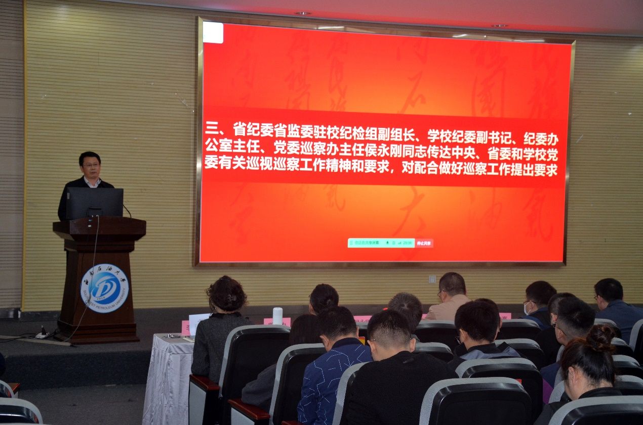 侯永刚传达了中央、省委和学校党委有关巡视巡察工作精神和要求,对配合做好巡察工作提出要求。他对与会人员提出三点意见,一是提高政治站位,深化对巡察工作的认识;二是坚持问题导向,确保巡察取得实效;三是强化政治纪律,高质量推进巡察工作。他希望巡察组全体成员在履行巡察职责过程中,要严格执行巡察工作规定,做到忠于职守、勇于负责、敢于担当,不泄露巡察中掌握的相关信息,接受被巡察单位师生员工的监督。