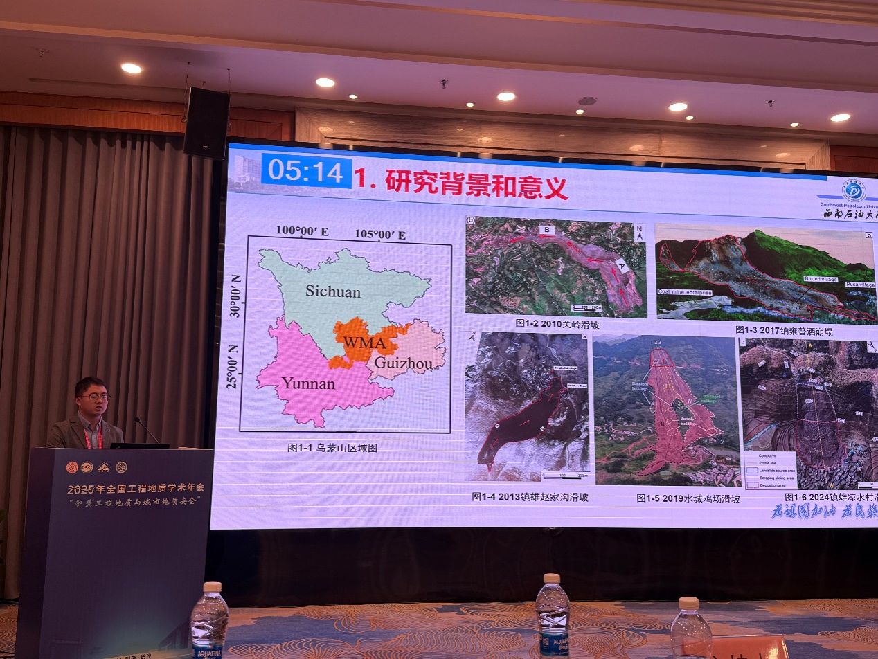 2025年全国工程地质学术年会于2025年11月21日至24日在长沙隆重召开。我院樊晓一教授和博士生夏贵平参加了本次大会,樊晓一教授在“地质灾害智能预警与风险评估”分会场以“预制装配式建筑抵御滑坡冲击的抗灾性能研究”为题作学术报告,系统阐述了灾难性高位滑坡碎屑流致灾特征、灾难性高位滑坡对框架结构建筑损毁模式、预制装配式建筑结构减灾性能方面取得的研究成果。同时,夏贵平博士在研究生论坛做了“中国乌蒙山旱季降雨诱发岩崩的触发机制与动力学”为题的学术汇报。