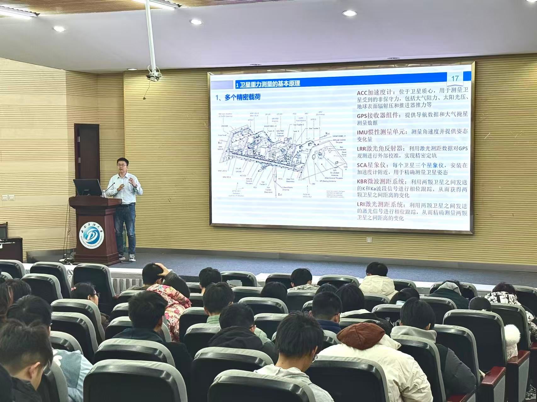 2025年12月11日,华中科技大学周浩教授莅临我院,在明志楼B105作“卫星重力测量”专题讲座。本次讲座由苏勇副教授主持,吸引了众多师生参与。