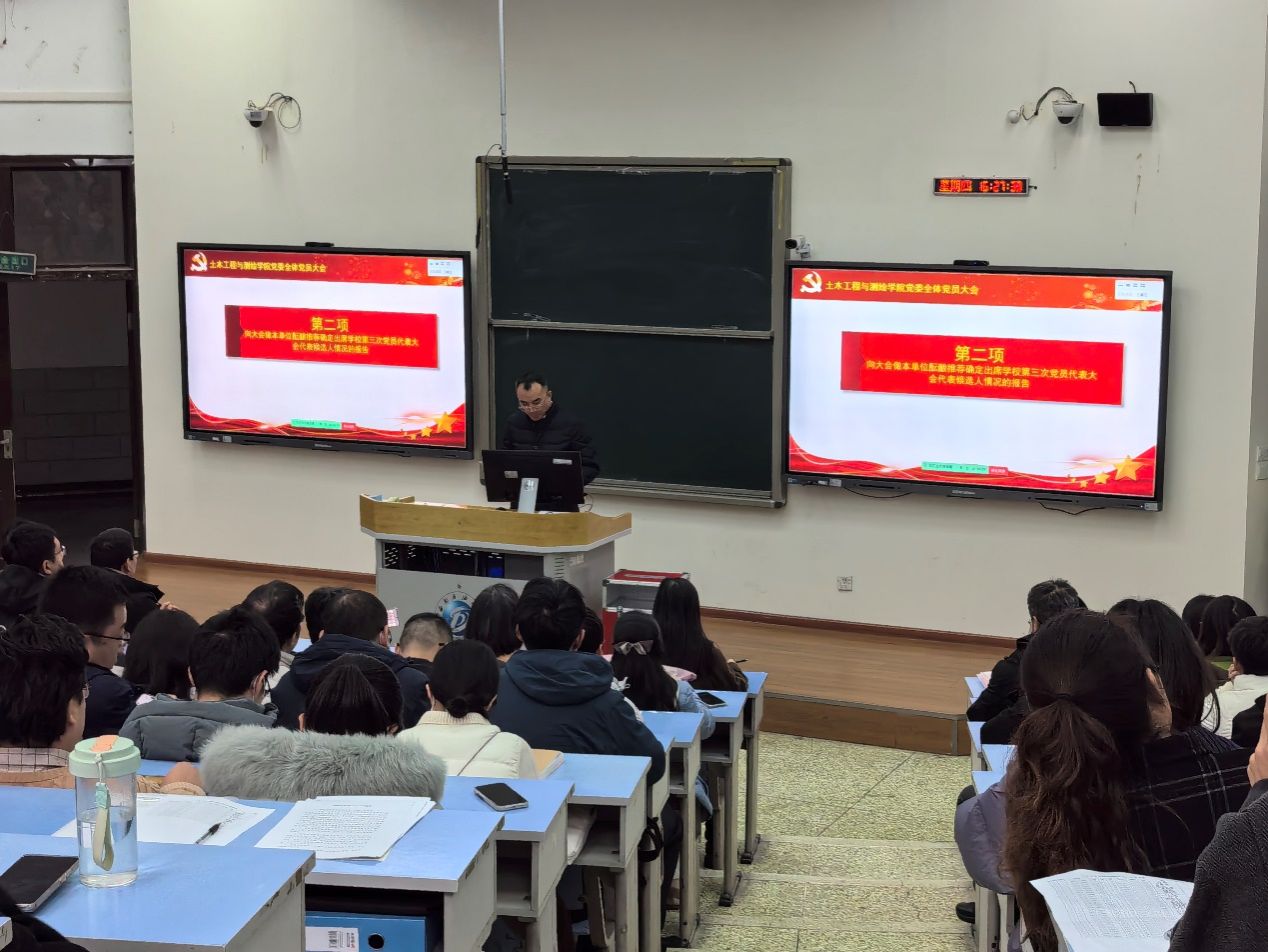 12月11日下午,土木工程与测绘学院党委在思学楼B110召开党员大会,选举学院出席学校第三次党代会代表。大会由学院党委书记熊俊楠主持。