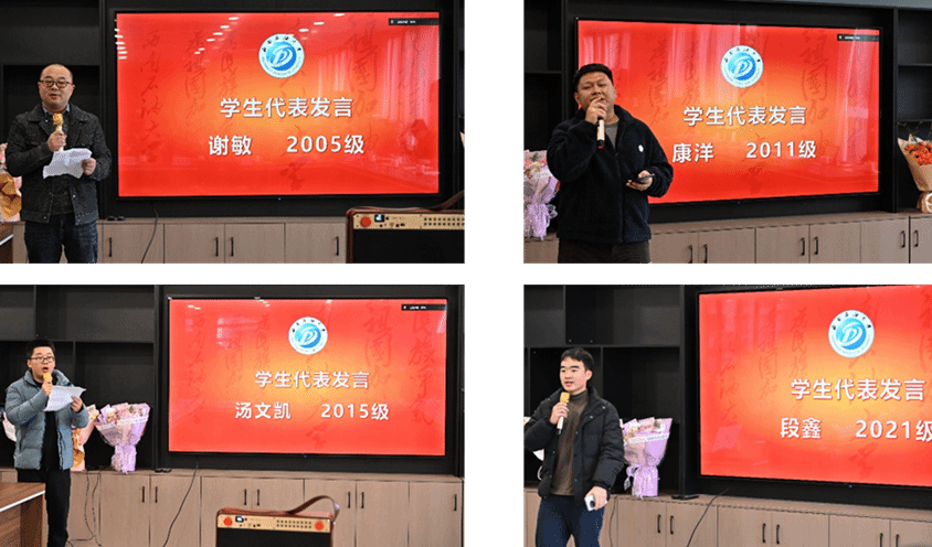 本次活动邀请了2005级(首届毕业)校友谢敏、2011级(毕业十周年)校友康洋、2015级(入校十周年)校友汤文凯、2021级(最新一届毕业生)校友段鑫作为代表发言。他们结合各自事业发展,深情回顾在母校的求学岁月,一致表示工程管理专业所倡导的“全寿命周期管理”理念对其成长影响深远,并在各自岗位上积极践行当年誓言。