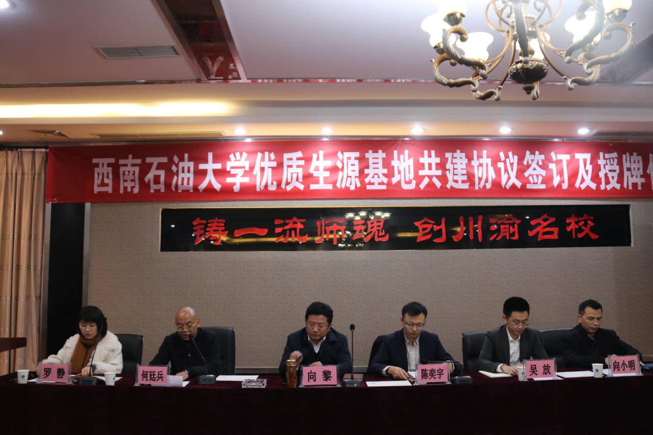 11月25日,西南石油大学招生办公室副主任陈奕宇、土木工程与测绘学院教师吴放一行人组成的宣传组赴四川省达州市,与达州市数十所重点中学进行座谈,研讨高校与高中的教育衔接,并与达州一中、宣汉中学、达州外国语学校等六所省级一级示范学校签署了优质生源地基地协议以及授牌仪式。