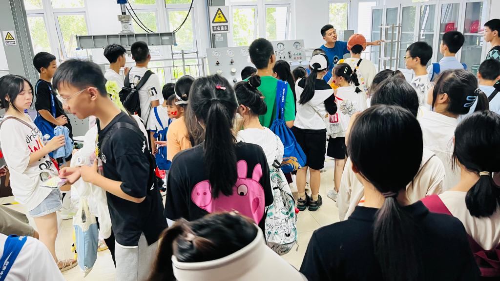 交流会结束之后,曾志刚老师组织带领同学们依次参观了建筑环境与能源应用实验室、土木工程材料实验室、结构工程实验室等学院实验室进行沉浸式亲身体验。在参观过程中,各实验室负责老师为同学们现场进行了专业的演示实验,将抽象的概念生动形象地展现在同学们眼前;当同学们看到手工制作的桥梁、房屋等各种模型,直观而真切的展现了学院专业特色;形体各异的无人机极大地激发了同学们的兴趣,不禁连连发出感叹。参观完实验室,领队老师还组织同学们参观了校园、体味了大学食堂,至此,校园开放日活动圆满结束。