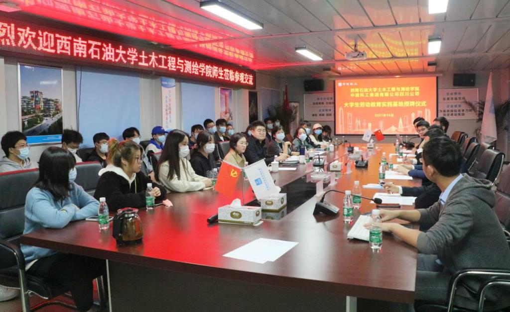 10月21日西南石油大学土木工程与测绘学院与中建科工集团有限公司四川分公司大学生劳动教育实践基地授牌仪式于三期成都人居人才住房项目顺利举行。出席本次仪式的有土木工程与测绘学院副院长梁琦,副教授蒲万丽,辅导员何雨洋,冉玉嘉。中建科工西部大区人力资源部经理王宏亮,中建科工集团四川公司总工程师吴昌根,党总支副书记李锋,总经理助理魏梦潇和人居人才住房项目班子成员及学生代表参加会议。