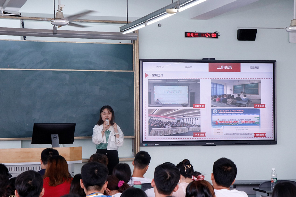 在创新创业比赛上有着丰富经验的李一鸣,从中国大学生创新创业大赛、全国大学生课外学术科技作品竞赛即“大挑”和“小挑”展开了他的经验分享。详细讲解了比赛全过程的主要流程,愿新生们在创新创业中增长智慧才干,在艰苦奋斗中锤炼意志品质,用青春书写无愧于时代、无愧于历史的华彩篇章。最后,研究生干部代表韩佳欣,从自身经验出发完美阐述了如何与“优秀同行”,权衡好学生干部中的“得”与“失”,研究生阶段的成功与否是不被定义的,要相信无论潜心科研,高产论文,还是投身竞赛,荣誉满载,还是积极实践,努力工作,或是奉献自己,投身学生工作。只要愿意沉潜三年,沉淀三年,都将拥有属于自己的天空。