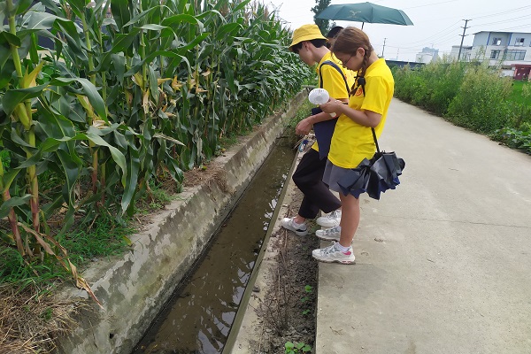 图为实践队观察沟渠水质