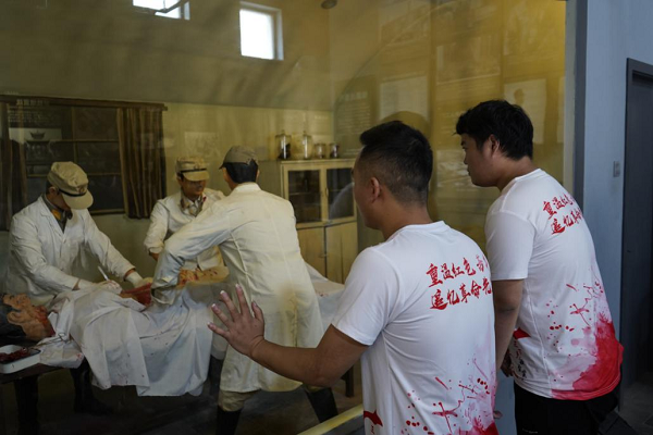 馆内运用多种历史场景蜡像,重现了日军惨无人道的人体细菌实验。虽然在日军的精神折磨以及肉体折磨下,但革命先辈们依旧没有忘了抗战的重要性。馆内逼真的蜡像重现了革命先辈誓死抗战的决心,只为驱逐入侵者。中国壮士(1931-1945)群雕主体为200多名1931年至1945年中国抗日战争期间的全民族抗日将士英雄群体形象。