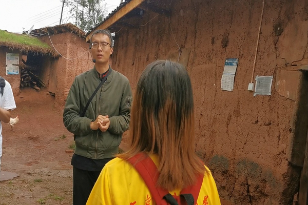 图为李凯带领实践队员参观吉好也求的新家