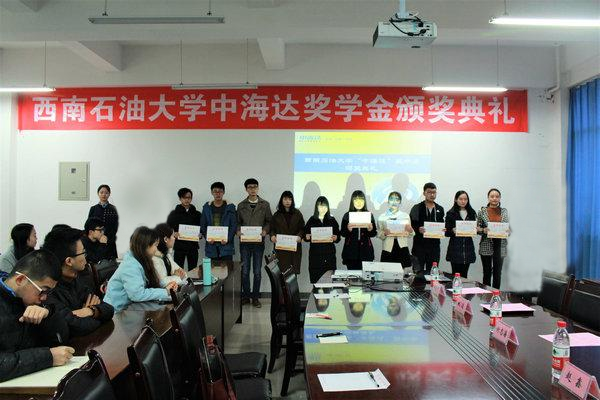 12月22日下午,西南石油大学2018年“中海达奖学金”颁奖仪式在明志楼A413成功举行。土建院党委副书记姚远、成都中海达卫星导航技术有限公司总经理谢志海、成都中海达卫星导航技术有限公司销售经理赵鑫出席本次仪式。