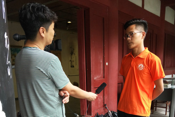 值得一提的是,当天实践队还受到了当地电视台教育栏目记者采访,提高了本次社会实践对社会的影响力。参观之后,全体队员前往位于李白纪念馆中的青莲诗社,与诗社中人员进行互动交流,共同探讨李白文化。诗社全体会员热情地接待了实践队队员,并对实践队举行了赠书、表演诗词吟诵、讲解吟诵艺术、题词等活动。实践队全体队员认真学习诗词中的吟诵艺术,深刻地感受到了中国传统文化。