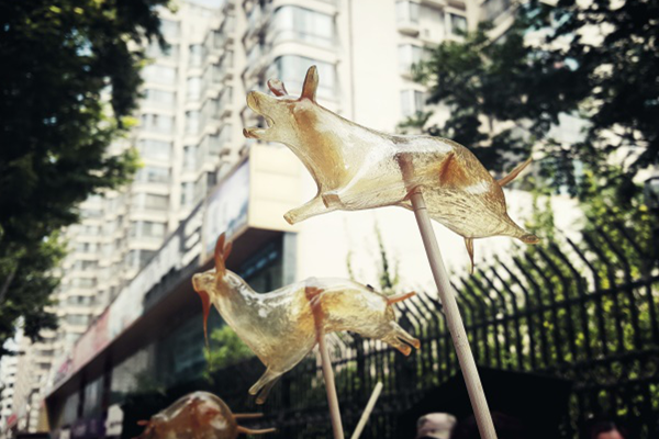 从偌大的回民街出发,熙熙攘攘中,镜糕店铺前长长的队伍引起了队员们的关注。这项手艺,凭借自身美食属性和处于旅游热区的优势,依然在蓬勃发展。至于高家大院的皮影戏,早就闻名了四方。迈进院门,连弄堂也满是人潮,凑满这一院子的人,真心喜爱倾慕而来者有,走马观花长见识者亦有,实在为皮影戏攒足了人气。闹市中很多小玩意儿被赋予了新的名字高的价格,但依然被追捧。只看见一只手递过钱去拿回个物件,随即空中就有了很多的手,热闹非凡。