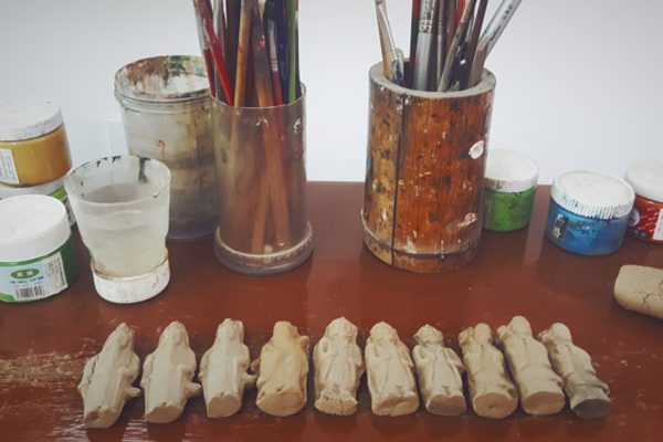 踏上白鹿原,这个在陈忠实笔下极富神秘色彩和文学气息的地方,实践队深入了解了“泥叫叫”的历史背景和制作工艺。“泥叫叫”,即泥哨,易于发出清脆悦耳的“唧唧唧”声,现常作为泥塑收藏品供把玩品味,也曾是孩子们手中的玩物,更早的农耕时期它确是具有实用意义的。泥叫叫吹的不同节奏还含有不同的意义,这便与制作工艺有关。随着时代发展,泥叫叫的形象也在不断创新,比如说喜羊羊、熊大、熊二等动漫形象也能在手艺人手下展现百态。但其实当下泥哨的市场竞争力远输于其他工艺品,没人买、不赚钱、盈利颇少的行情导致学艺者寥寥无几,加之作为传统手艺不外传,泥哨正处于一种“濒危”的状态。实践队采访的刘新霞女士无奈笑语“也许很多年后没人愿意再做了吧”。而她个人表示:“虽然不会做为主业去做,但是至少会当成副业,一有时间就在做······孙子很喜欢这些。”采访过程中她的孙子一直在旁边玩,制作自己喜欢的泥塑。陈女士说:“孙子挺喜欢的,以后他应该会做”。