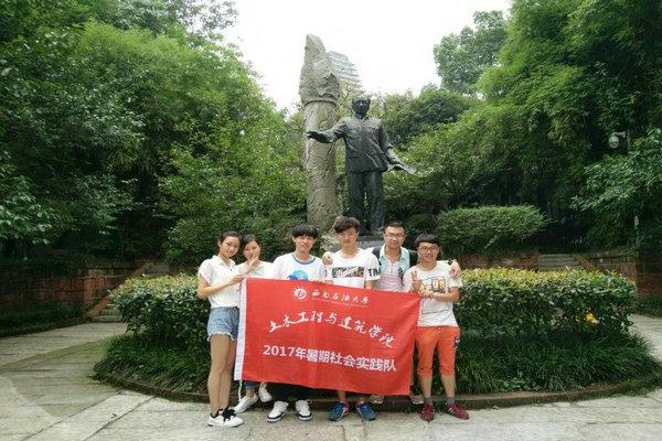 实践队在郭沫若雕像前合影