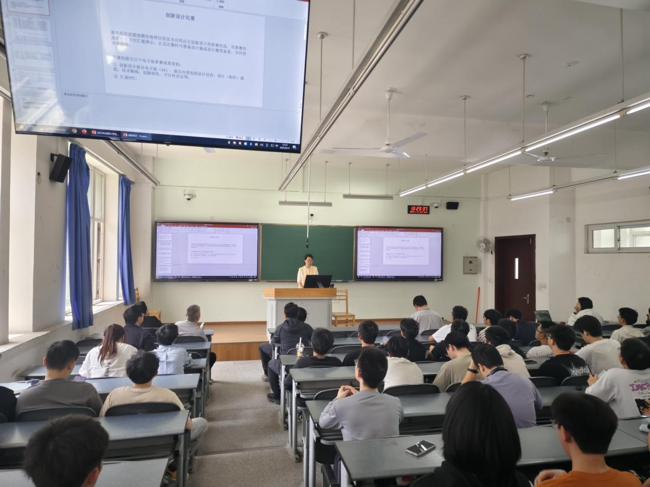 全国大学生测绘学科创新创业智能大赛是教育部认定的国家级A类竞赛,涵盖“测绘技能竞赛”“开发设计竞赛”“科技论文竞赛”三大类共8个赛项,包括无人机航测虚拟仿真、虚拟测图、激光雷达虚拟仿真、程序设计、创新开发、创新设计、创业计划及科技论文等。动员大会上,谷延超老师指出,本次大赛不仅是对学生专业技能的检验,更是推动学科交叉融合、服务国家战略需求的重要平台。例如,无人机航测与激光雷达赛项聚焦新型测绘技术应用,而创业计划类则需结合“乡村振兴”“双碳目标”等国家战略方向。