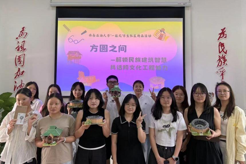 2025年6月5日,在修齐居B区多功能室举办了“方圆之间—解锁民族建筑智慧,共话跨文化工程魅力”西南石油大学“一站式”学生社区精品活动,此次活动的参与成员为土木工程与测绘学院学生,举办方为土测院研会科技实践部。