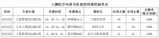 为扎实推进学院学风建设,学院开展"三查三促"专项行动。通过"辅导员-督导队-班委"三级联动机制,对课堂到课率进行全面督查,现将2025年秋季学期第四周数据通报如下: