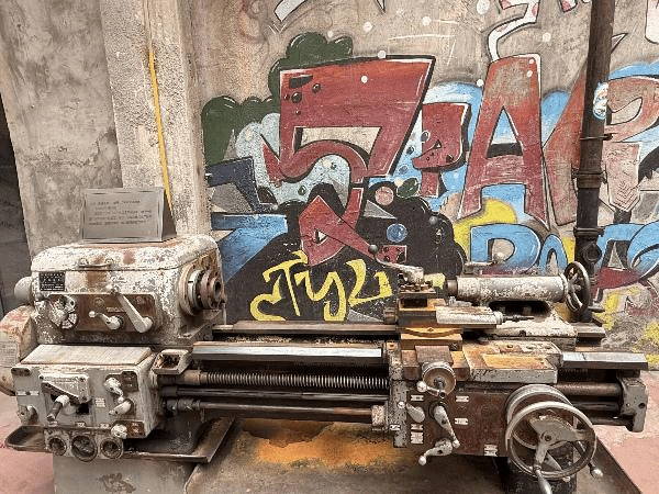 实践队首站探访工业横街,斑驳墙面上“抓革命、促生产”的标语与老式冲床改造的景观相映,诉说着上世纪工业辉煌。游客中心里,1986年的工厂老照片与现代展厅重叠,让队员们直观感受到“修旧如旧”的有机更新理念。大烟囱下,大家观察加固痕迹时感慨:“城市更新不是推倒重来,而是小心翼翼的传承。”