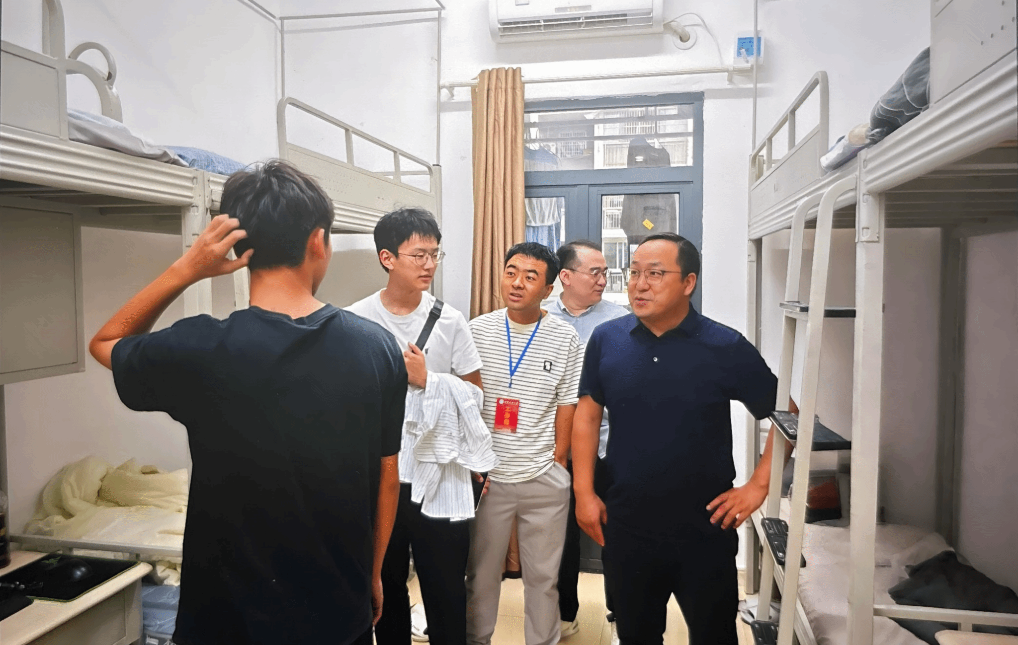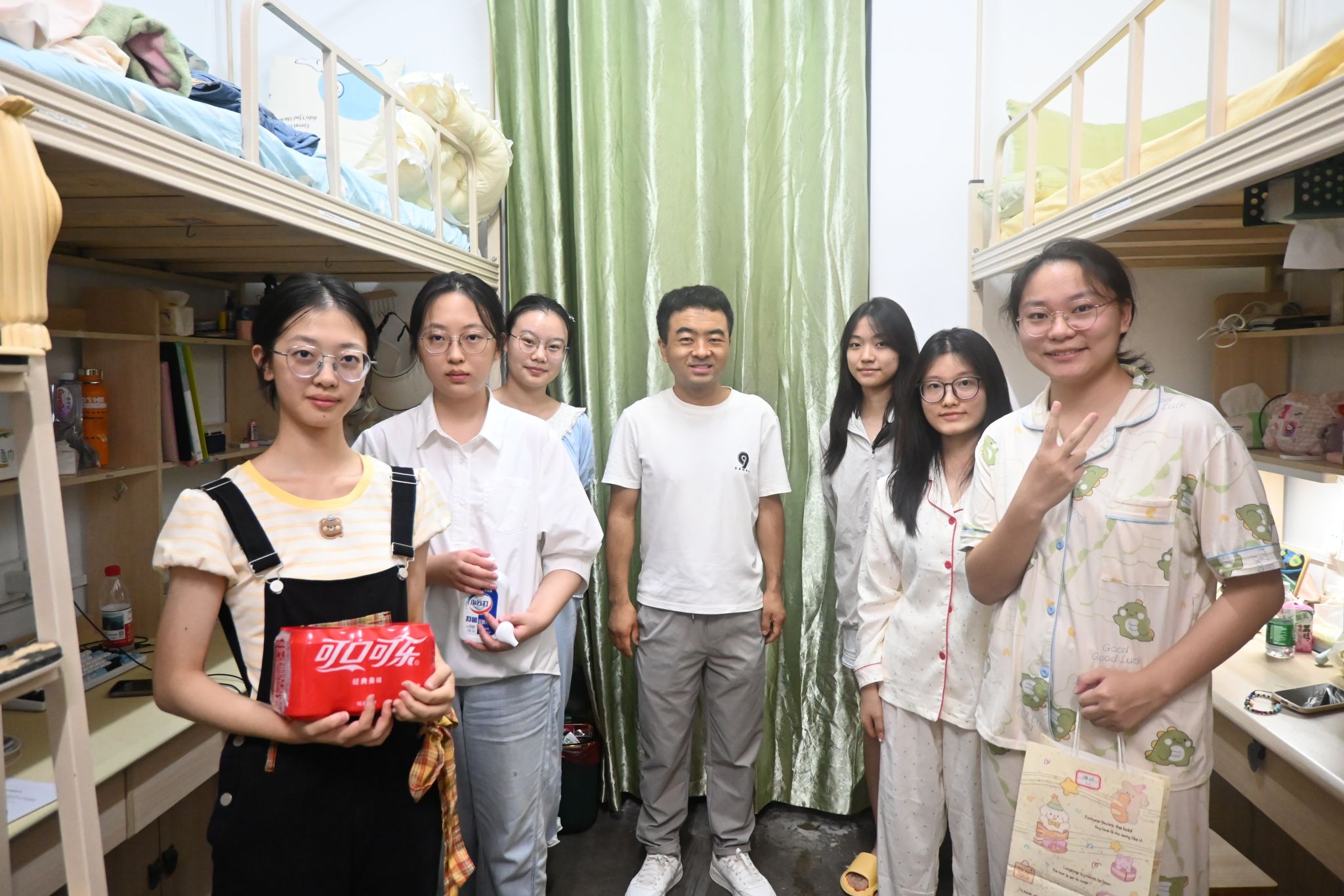 潘海泽带领学院老师来到新生宿舍,亲切询问新生入校后的生活状况,勉励全体新生积极适应新环境,珍惜大学宝贵时光,树立长远发展目标。辅导员牟彩伟带领班导生为新生逐一分发学院精心筹备的“清凉礼包”,并在与同学们的亲切交流中,围绕专业发展、课程规划及大学生活管理等方面提供针对性指导。团学组织学长学姐则主动分享实用校园资讯与学习方法,耐心解答新生的各类疑问,发挥同辈力量,助力新生快速熟悉校园环境。