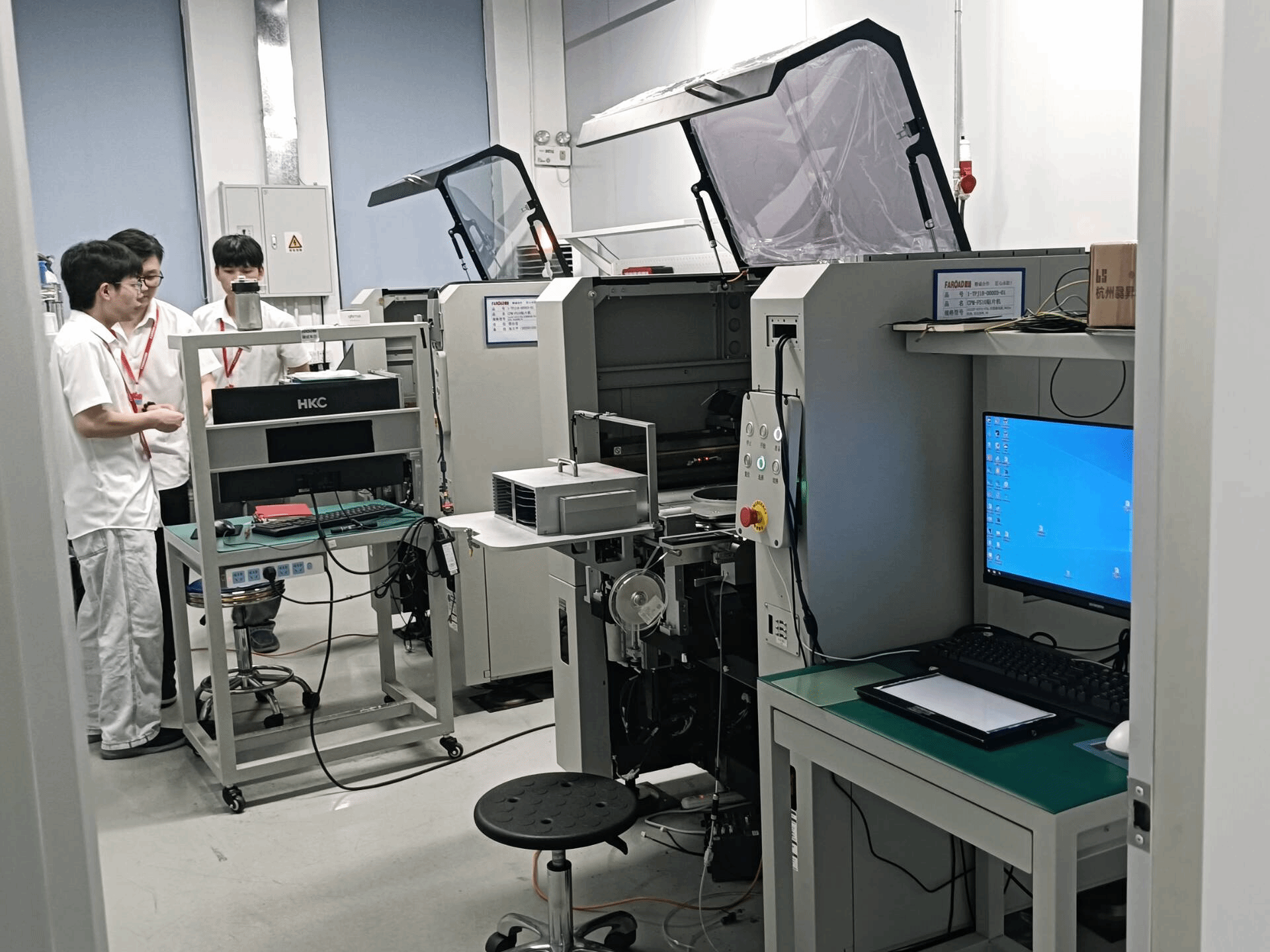 工作人员正在展示设备调试