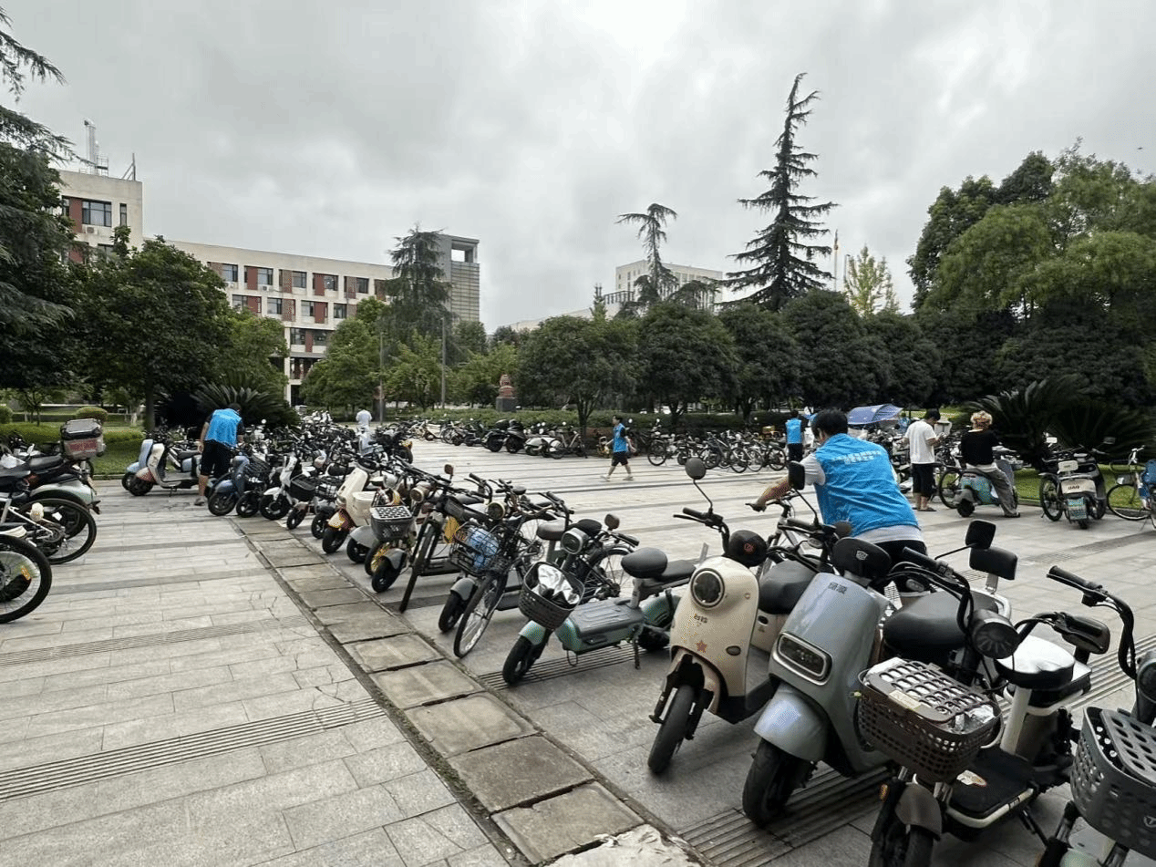 活动筹备阶段,青志协工作人员提前对明志楼及周边区域进行勘察,结合实际需求制定“分区协作”计划:将20余名志愿者分为两大组,一组共12人,再细分为4个小队,分别负责各楼层的教室与走廊清扫;另一组8人则负责明志楼楼下非机动车停放区的车辆规整工作。工作人员提前准备好扫帚、抹布、垃圾袋等清洁工具,同时明确车辆摆放标准——按照“车头朝向一致、车身排列整齐、不占用消防通道”原则整理,确保活动高效推进。“明志楼是上课自习核心区,楼下车辆若杂乱不仅影响美观,还可能阻碍通行,大家既要把教室扫干净,也要让车辆‘站好队’,同时注意不打扰楼内学习的同学。”活动开始前,青志协负责人向志愿者们强调细节,明确任务与时间节点。