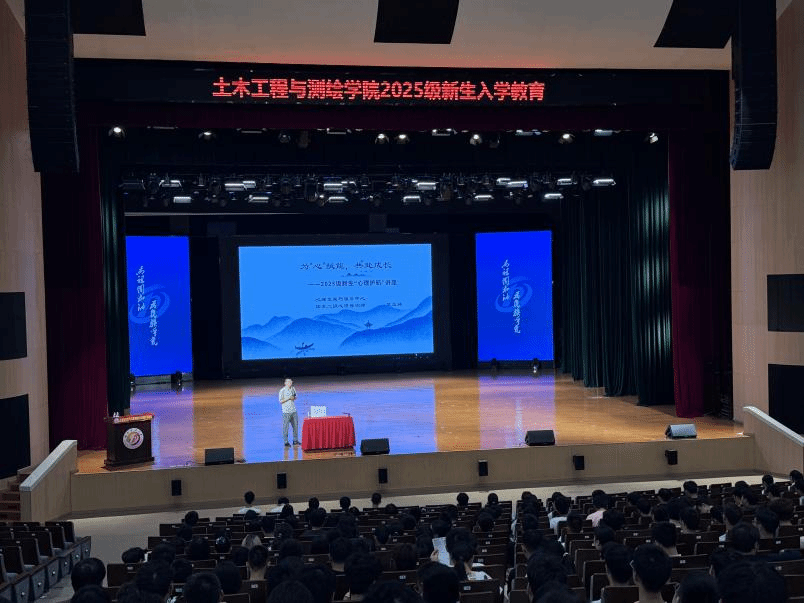 为帮助2025级新生尽快适应大学生活,关注心理健康,树立积极心态,9月8日15点,土木工程与测绘学院特邀学校心理发展与服务中心国家二级心理咨询师樊玉骋老师,在双创中心报告厅为全体新生带来一场以“心理护航”为主题的心理健康讲座。