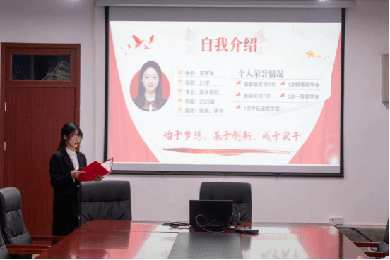 本次答辩会涵盖校长奖学金、国家奖学金、中国石油奖学金、中海油大学生助学金四项荣誉评选,采用分组答辩形式进行。经前期个人自主申报与学院筛选审核,共有10名品学兼优的学生入围现场答辩环节。答辩过程中,候选人依次登台,围绕思想表现、学业成绩、科研创新、社会实践等多个维度展开陈述。陈述内容详实、亮点突出,生动呈现了学子们追求卓越、全面发展的奋斗轨迹。