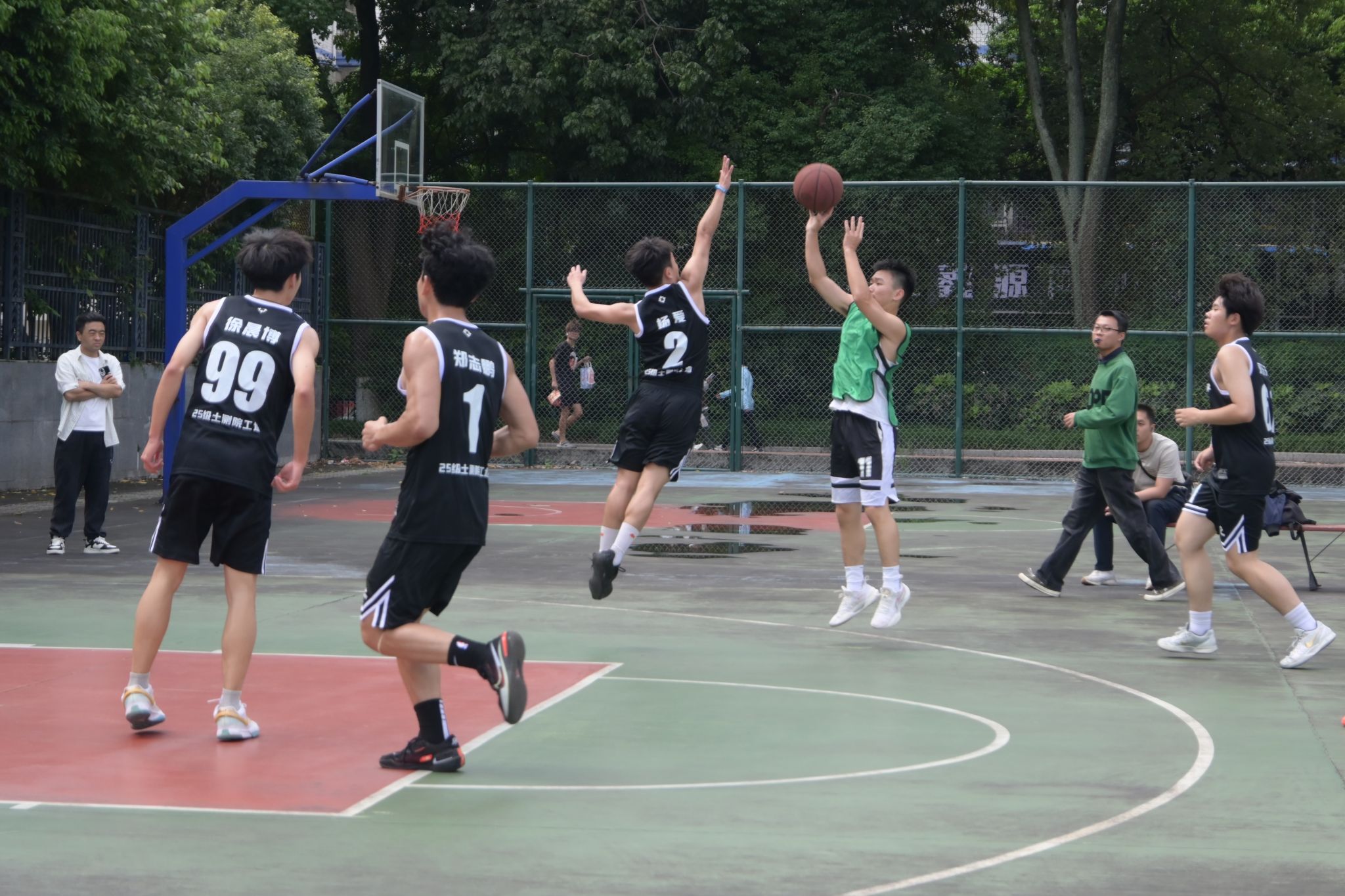 为保障赛事规范有序,本次联赛采用分组循环赛制,确保赛程公平。本次友谊赛共吸引来自土测院(南充)和电信院(南充)的八支新老生队伍参赛,历经八场对决完成赛程。比赛期间,各参赛队伍严格遵守赛事规章,队员们配合默契、攻防有序,既展现出扎实的运动技能和战术协作能力,也彰显了优良的体育竞技精神。场边观众热情助威,比赛现场氛围热烈。
