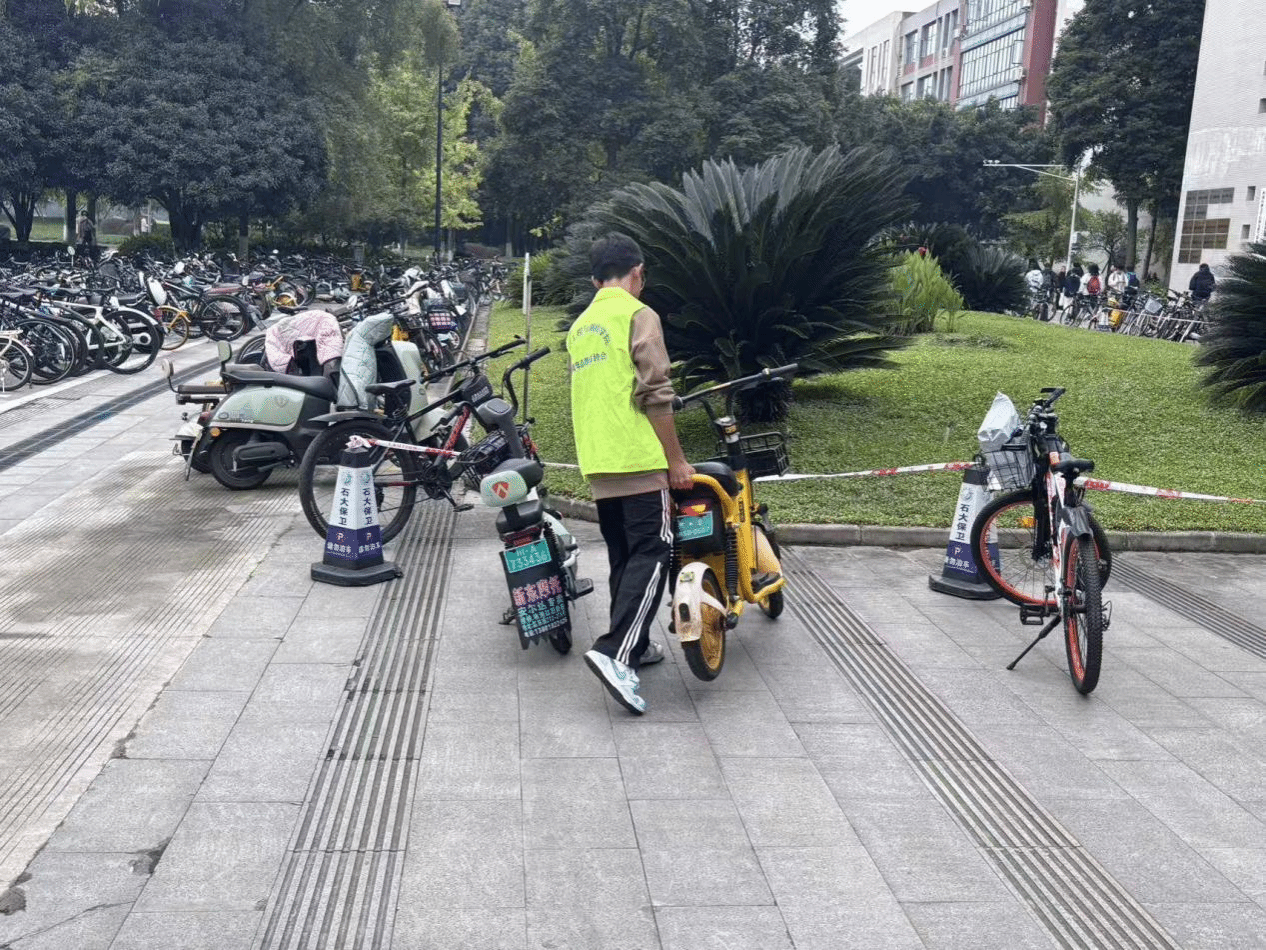 在活动实施过程中,志愿者们各司其职,密切配合。教室清洁组对课桌椅、讲台、黑板等设施进行了全面清洁,细致清理卫生死角;公共区域组负责走廊、楼梯等区域的清扫保洁;车辆规整组则按照统一标准,对楼前非机动车停放区的共享单车、电动车进行规范整理。志愿者们始终保持专业的工作态度,既保证了环境整治效果,又最大限度地减少了对教学楼正常秩序的影响。他们的辛勤付出得到了在场师生的一致好评,许多路过的老师同学都对他们投以赞许的目光。不少志愿者表示,通过参与此次活动,不仅为校园环境改善贡献了力量,更在实践中提升了自身的组织协调能力和团队合作意识。