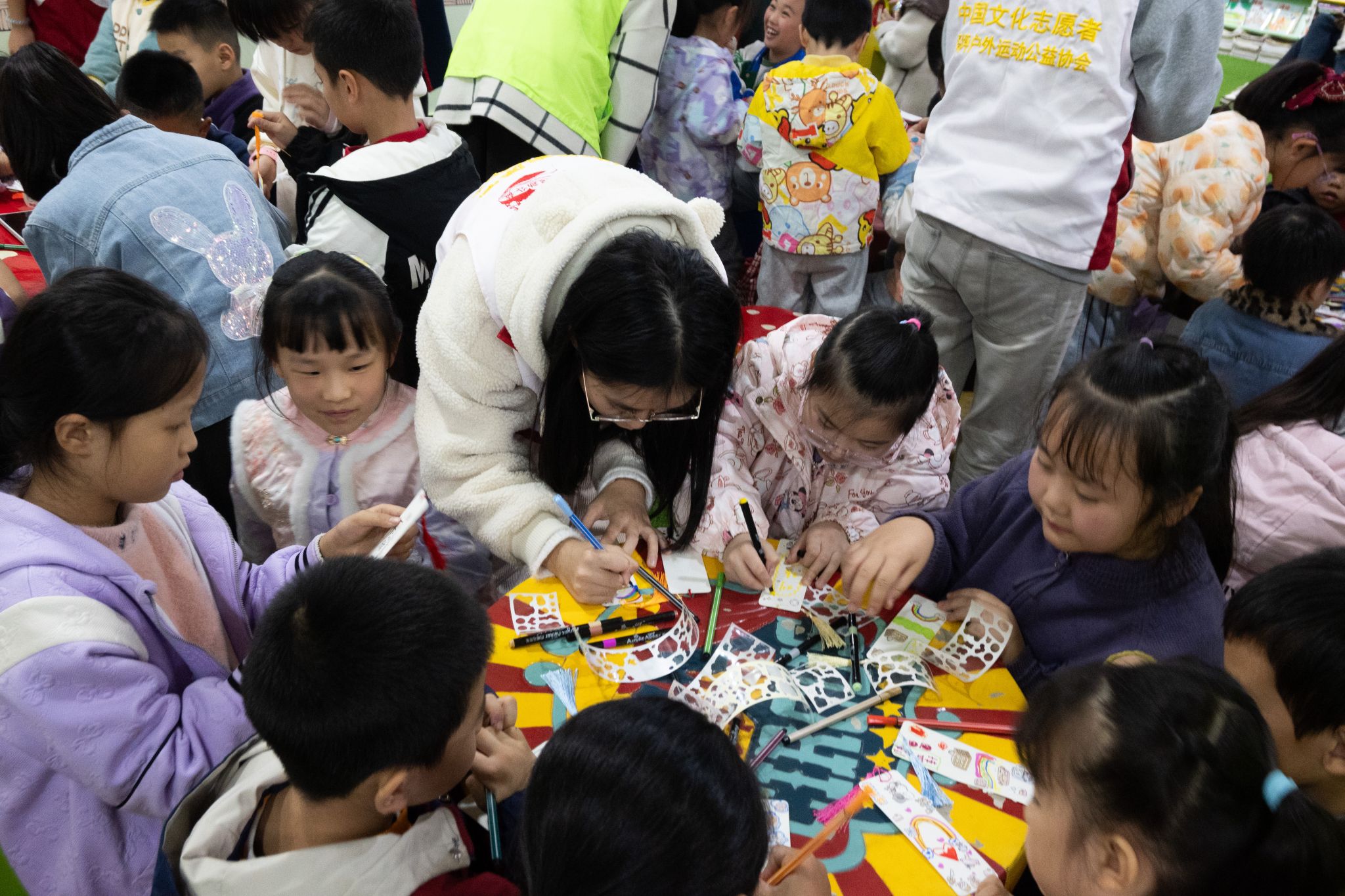 活动现场,志愿者们以声情并茂的方式讲述经典童话故事,凭借生动的情节与鲜活的表达,带领孩子们沉浸在奇妙的文学世界里。在创意书签DIY环节,志愿者耐心引导小朋友们发挥想象力,用彩纸、画笔、贴纸等材料制作专属书签,孩子们兴致勃勃地勾勒图案、书写寄语,在动手实践中体会阅读的乐趣与创作的成就感。随后,“成语接龙”“你画我猜”等益智游戏有序开展,志愿者与小朋友们热情互动,现场不仅充满童真童趣,更形成温馨的团队协作氛围,让少儿在游戏中收获知识,在互动中感受温暖。