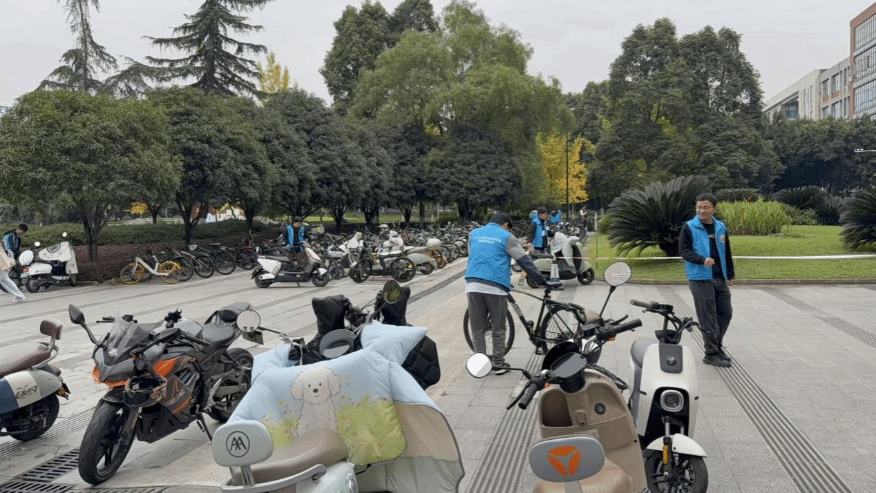 下午 5 点 45 分,清扫活动圆满结束。经过 30 分钟的奋战,明志楼 10 余间教室、3 条走廊及公共休息区焕然一新:课桌椅整齐洁净,地面无杂物灰尘,窗台墙角清爽明亮。志愿者们有序整理工具,在明志楼前合影留念,马甲上 “志愿四川” 的标识与脸上的笑容相映成趣。