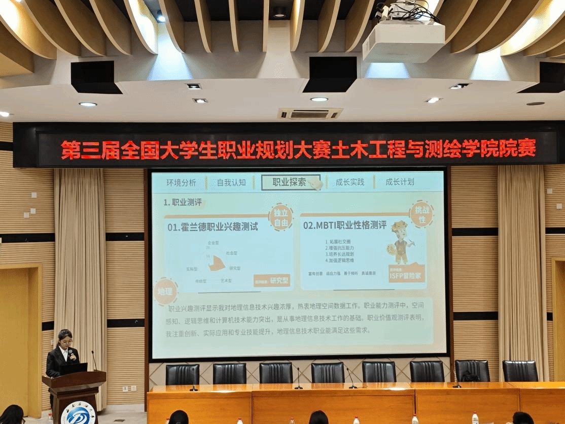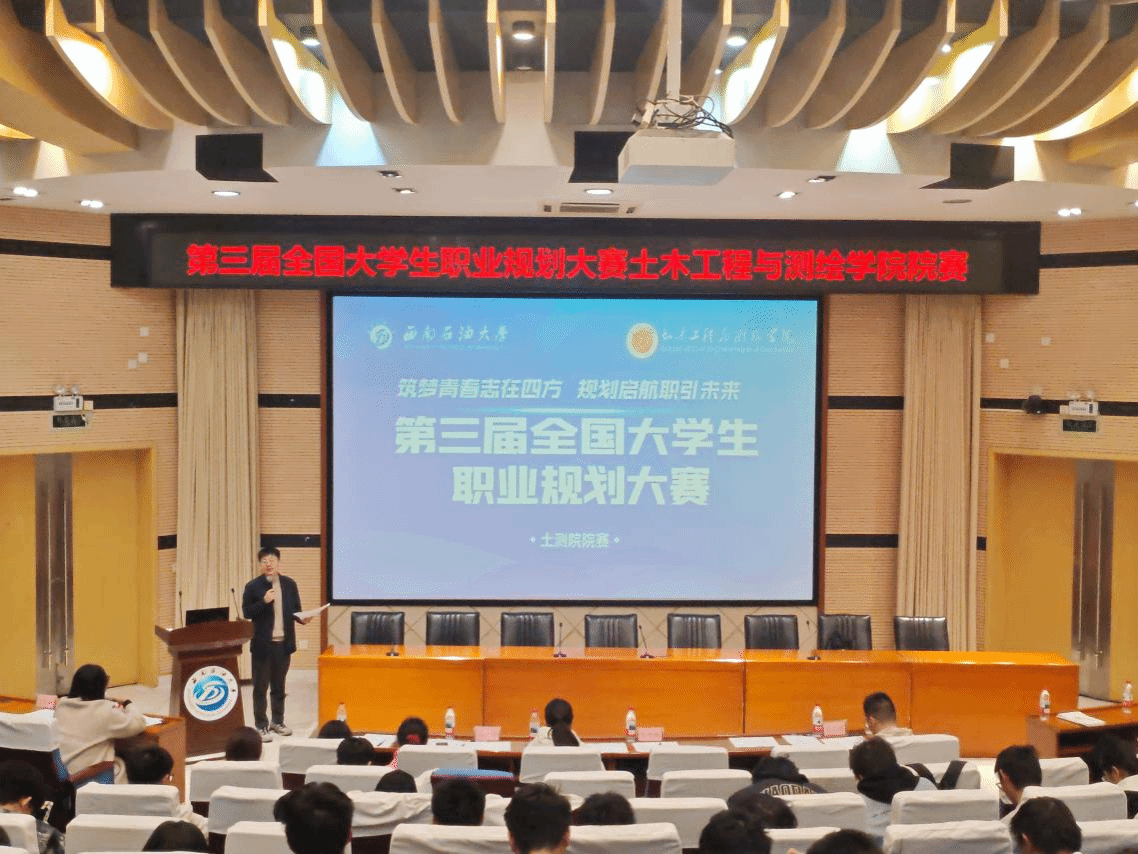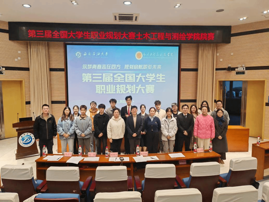 2025年11月13日-11月20日,第三届全国大学生职业规划大赛土木工程与测绘学院院级比赛在成都、南充两校区成功举办。本次比赛以“搭建成长平台,赋能职业未来”为核心,汇聚全院14名优秀学子同台竞技,展现土测学子对职业发展的深刻思考与青春担当。比赛分为成长赛道与就业赛道两大组别,经过激烈角逐,在成长赛道中评选出2名金奖、3名银奖、4名铜奖;在就业赛道评选出1名金奖、1名银奖、3名铜奖。