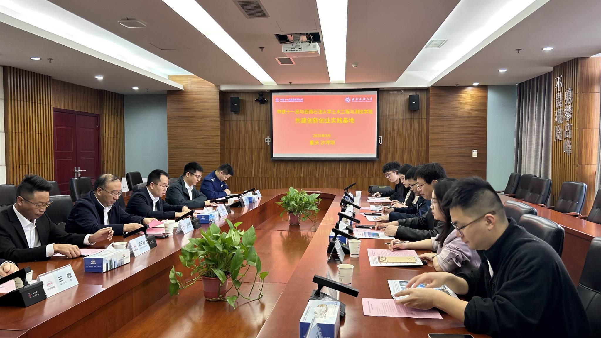 为推进西南石油大学土木工程与测绘学院科技成果落地以及师生创新创业实践,2025年3月25日,中铁十一局与土木工程与测绘学院现场签订了共建创新创业合作基地的协议,中铁十一局宋宗诚等代表以及土木工程与测绘学院教师代表出席参加。