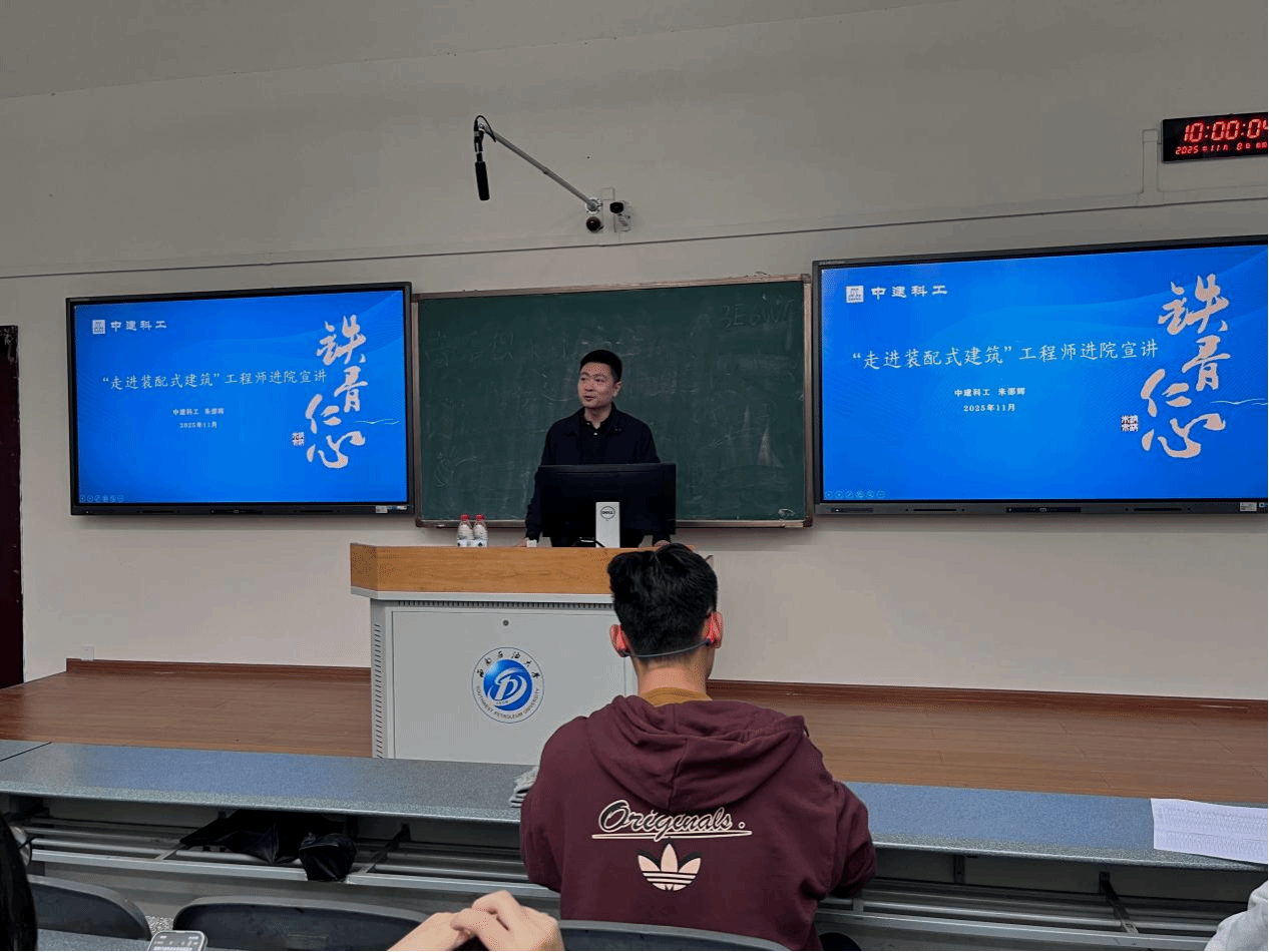 2025年10月20日,中建科工西部大区党委副书记、总经理、高级工程师、注册一级建造师朱邵辉应邀来校开展题为“走进装配式建筑——建筑行业高质量发展与职业规划”的专题讲座。本次讲座吸引了众多师生参与。