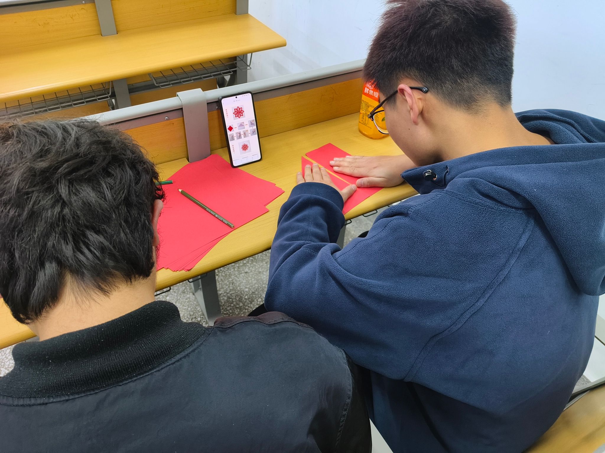 活动围绕非遗剪纸文化分三期有序推进。活动首期,负责人以剪纸起源为核心内容,详细梳理剪纸的发展脉络与历史沿革,通过展示不同时期的代表性纹样,让同学们直观感知剪纸艺术的历史底蕴与艺术特色。活动二期聚焦动手实践,学院统一配备剪纸工具,提供基础图样并辅以视频教学,引导同学们快速掌握剪纸技巧并投入创作。活动三期围绕青年如何传承剪纸非遗展开深入研讨,同时引导学生分析“福”“禄”“寿”等传统纹样背后的文化内涵,深刻体悟优秀传统文化的育人机理。