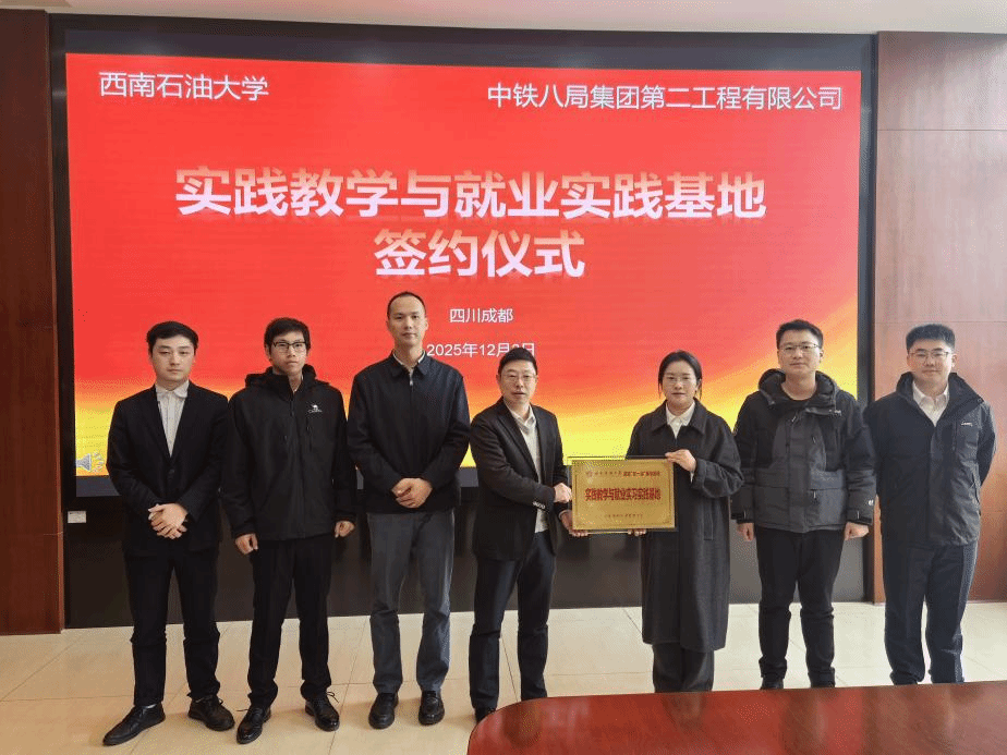 2025年12月3日,为深化校企合作、拓宽人才培养与就业渠道,西南石油大学土木工程与测绘学院党委副书记何雨洋、就业工作负责人王治霖、辅导员曾志刚带队赴中铁建大桥工程局集团第五工程有限公司、广州中海达卫星导航技术股份有限公司、中铁二局建筑公司、中铁八局集团第二工程有限公司、中铁十一局集团有限公司开展校友慰问和合作洽谈,并正式签订“实践教学与就业实践基地”协议。