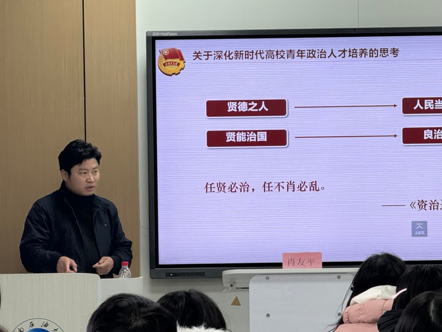 全体学生骨干对肖书记的到来表示热烈欢迎,这表明学校团委对土测院学生骨干培训的高度重视。首先引入“为政之要,惟在得人”,结合总书记讲话强调选人用人要坚持德才兼备、以德为先,同时明确严把德才标准、公正用人等具体要求。